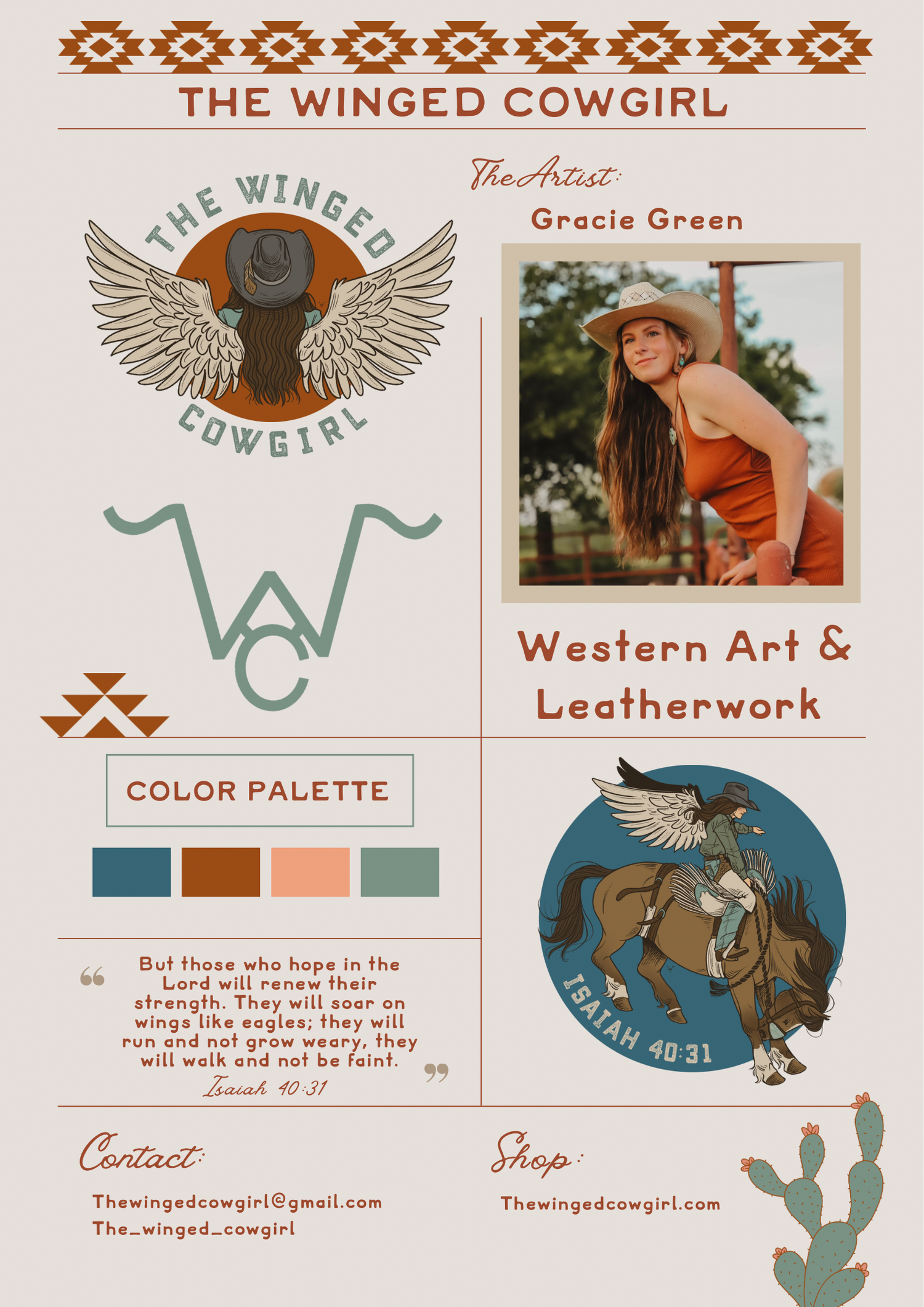 This is the branding I made for The Winged Cowgirl. You can have this done too! It can be personalized to you and your business. Shop “Custom Branding Bundle”!